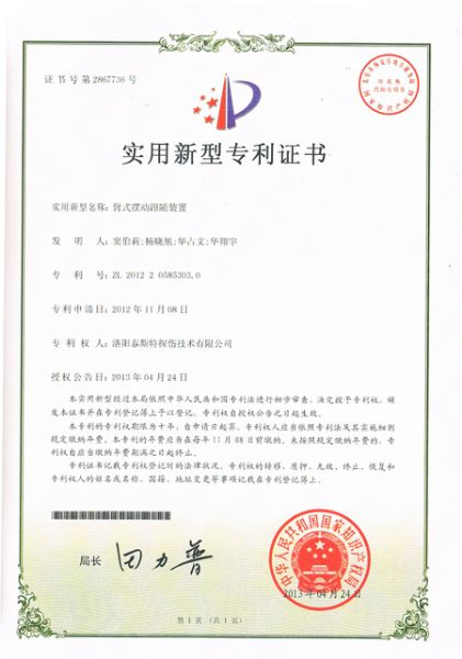 重視知識產權,不斷進行創新,憑著以技術行業的理念,TST公司又獲得了由知識產權局頒發的四項發明利證書,分別是兩項實用新型:臂式擺動跟隨裝置、種便攜式鋼絲繩損傷探測裝置。兩項外觀利:鋼絲繩探傷儀(防爆可攜帶型)、鋼絲繩探傷儀(攜帶式大直徑型)。
