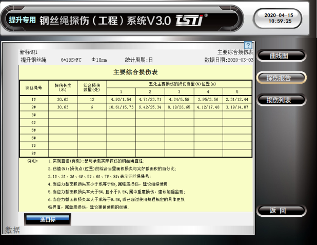 還可自動生成鋼絲繩探傷報告和損傷列表,對鋼絲繩進行全方位的評估。同時系統根據鋼絲繩損傷程度具備三級報警模式,有效的守護鋼絲繩安全。