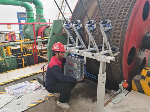 四繩提升機鋼絲繩監測系統安裝現場